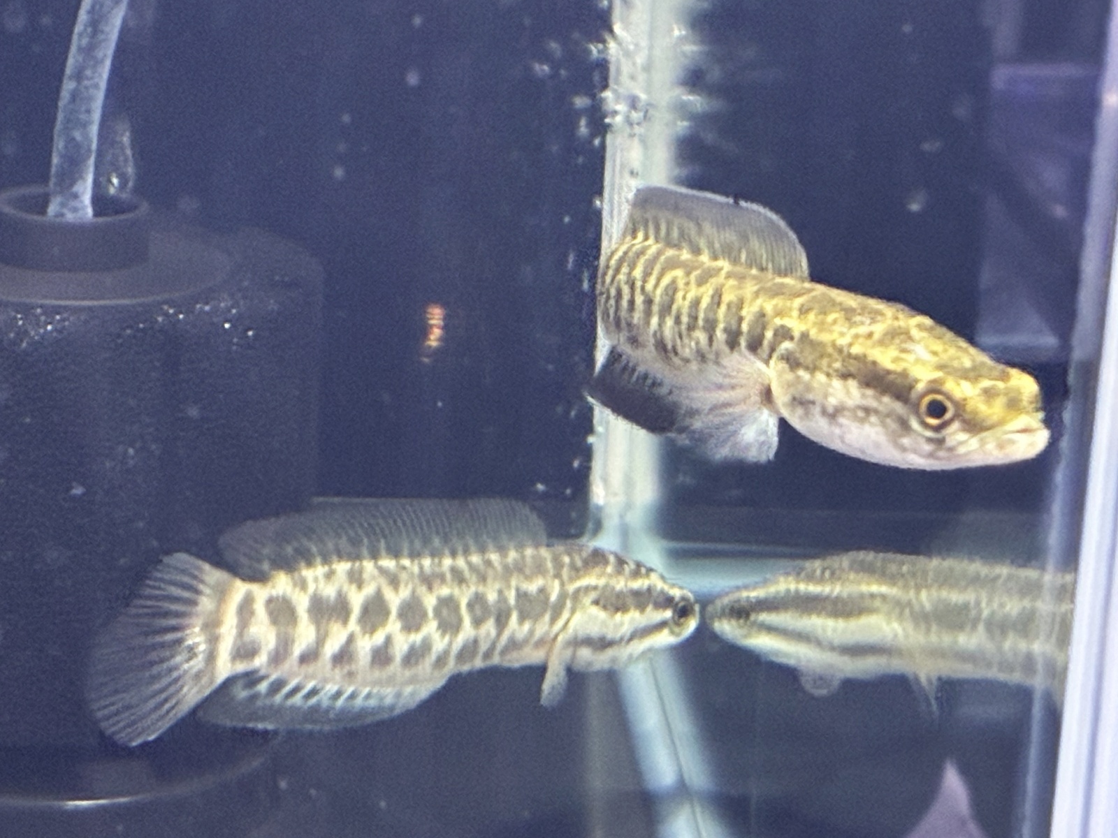 本種は蛇のような頭を持ち、2列に並ぶ斑紋が上下につながるライギョの一種♪
