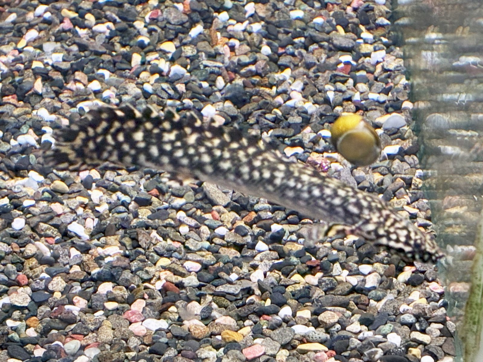 本種は上顎が突出するタイプで、黄色っぽい体に黒い網目模様の派手な見ための大型になるポリプテルス♪