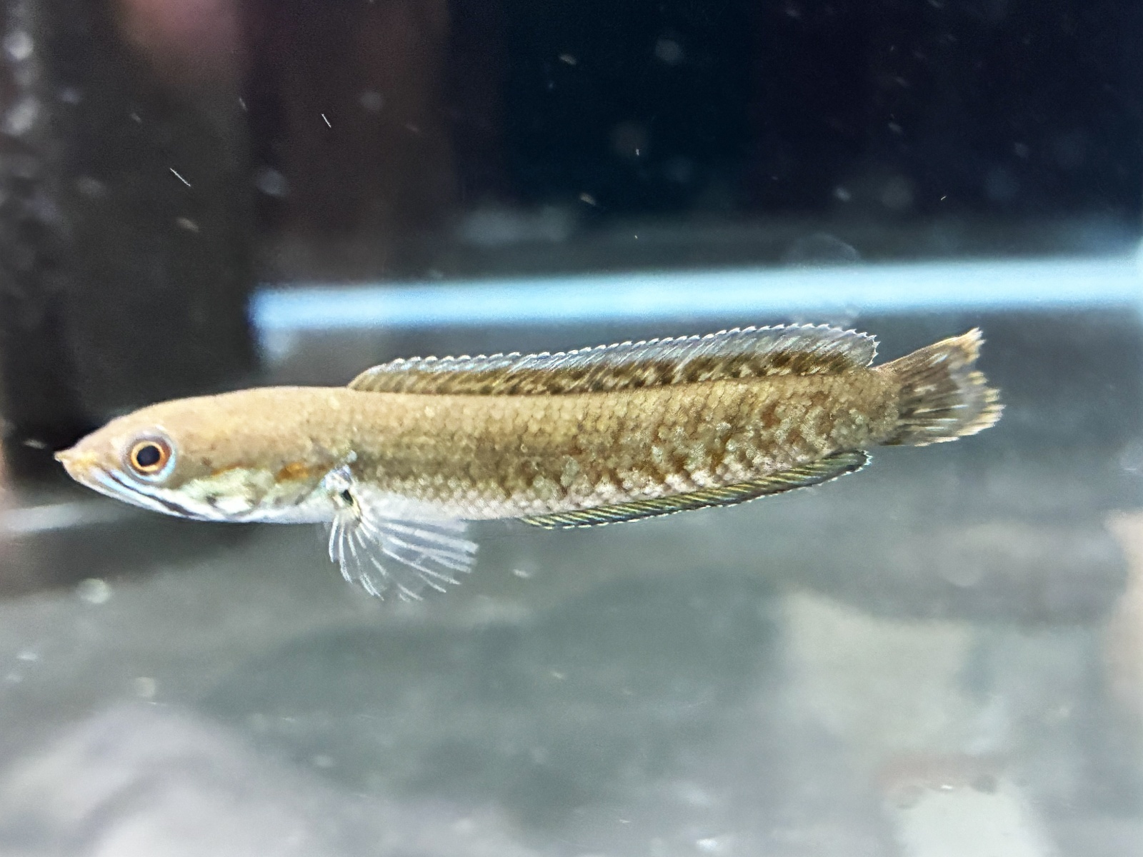 本種は青い背鰭と尻鰭のオレンジ色の縁取りが美しい小型スネークヘッド♪