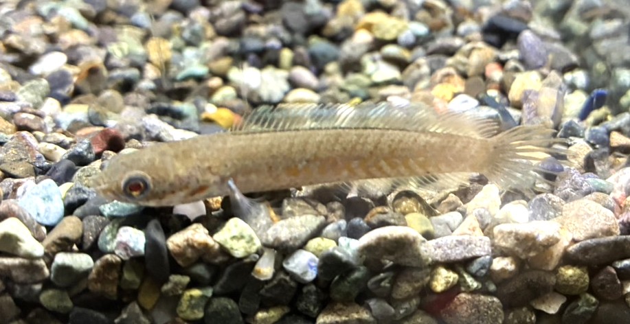本種は青い背鰭と尻鰭のオレンジ色の縁取りが美しい小型スネークヘッド♪