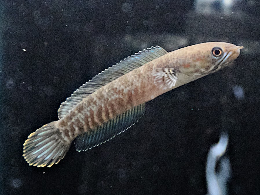 本種は青い背鰭と尻鰭のオレンジ色の縁取りが美しい小型スネークヘッド♪