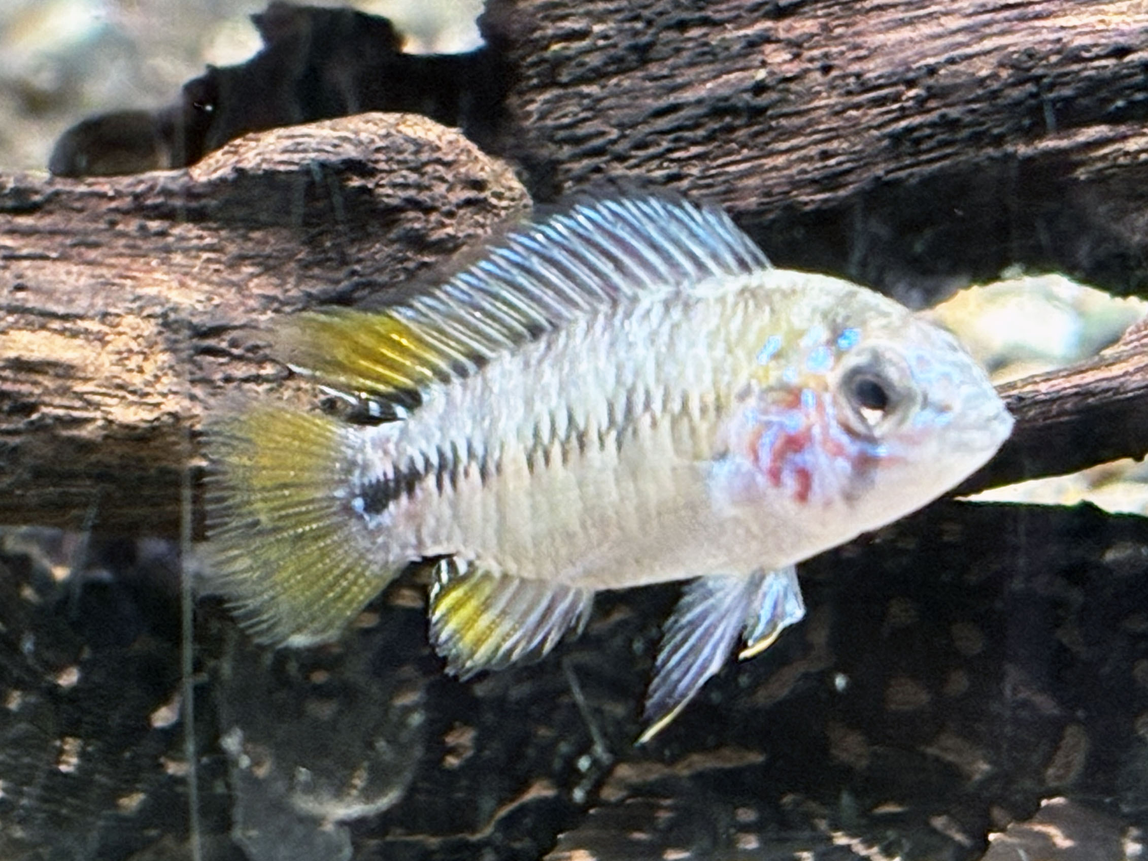 本種は成熟するとオスの背鰭と尻鰭が大きく広がり、体色は鮮やかなブルーに染まり美しいアピストグラマの仲間♪