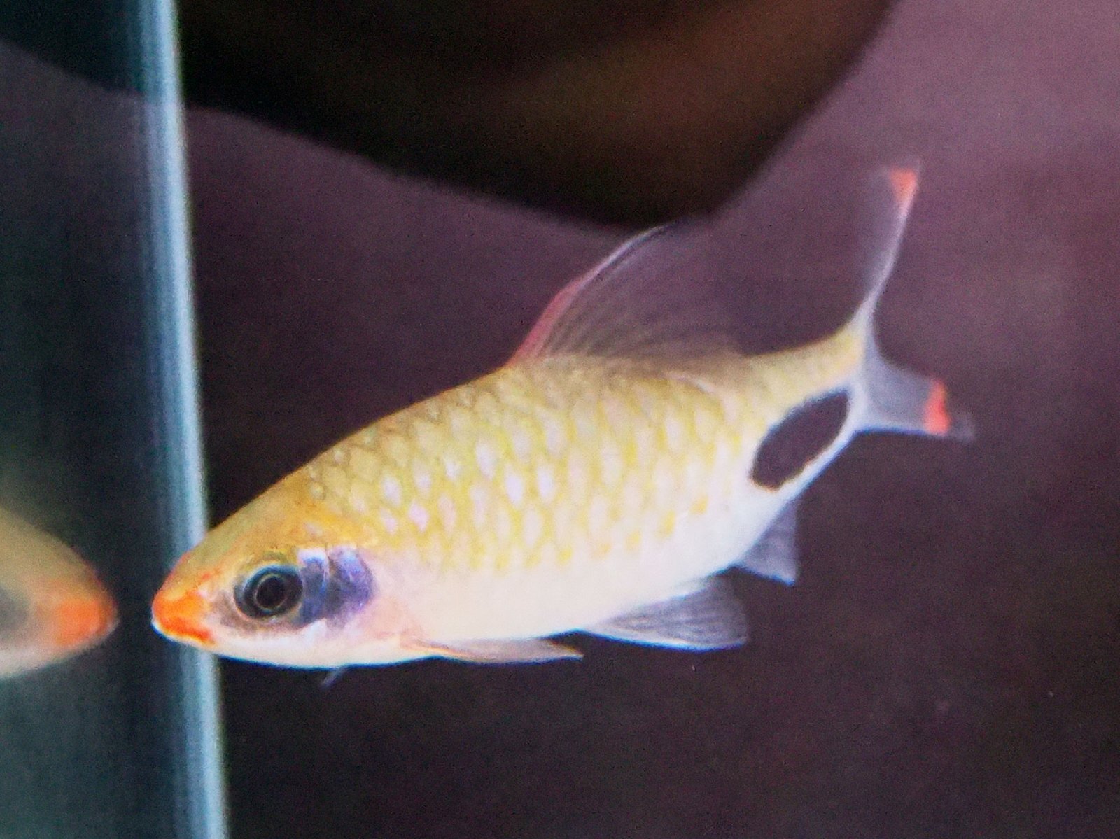 本種は顏周りや尾ビレの端に赤と黒の模様が特徴的なコイの仲間♪