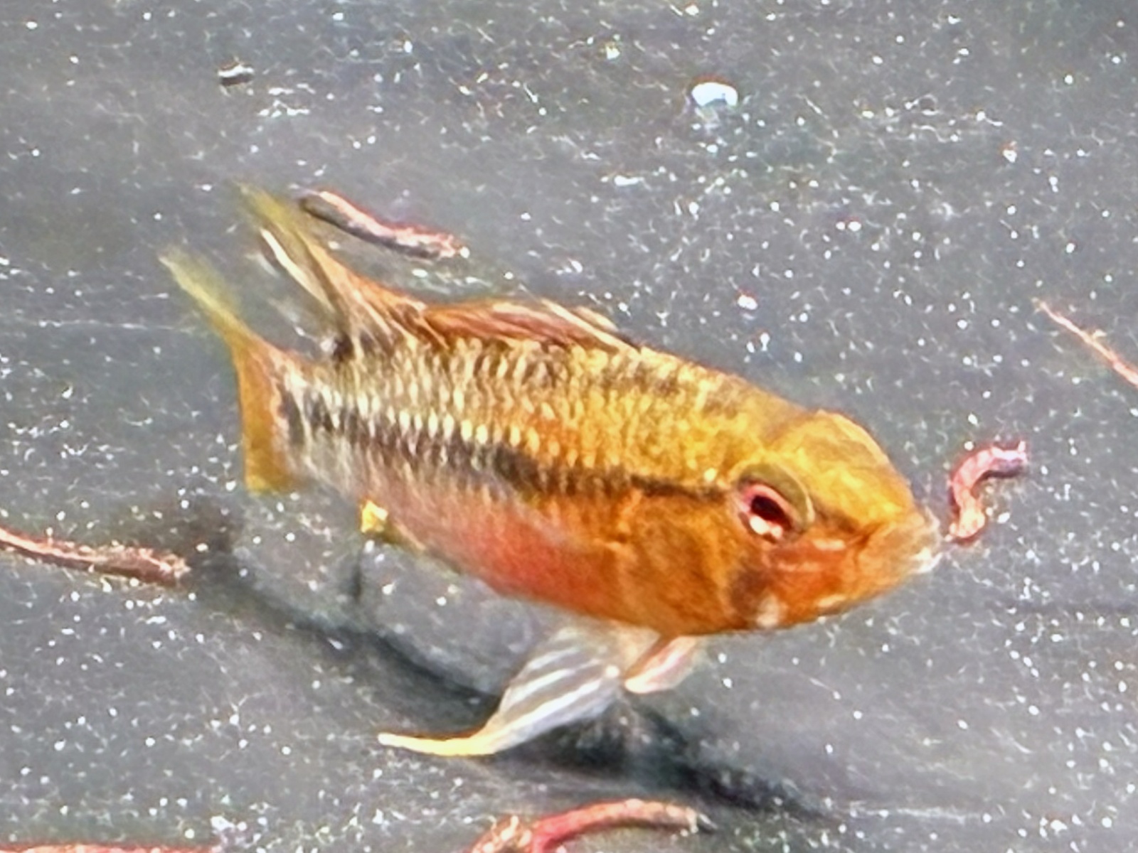 本種は体高のあるがっちりした体型にオスの長く伸びる背鰭の色彩のグラデーションが美しいアピストグラマ♪