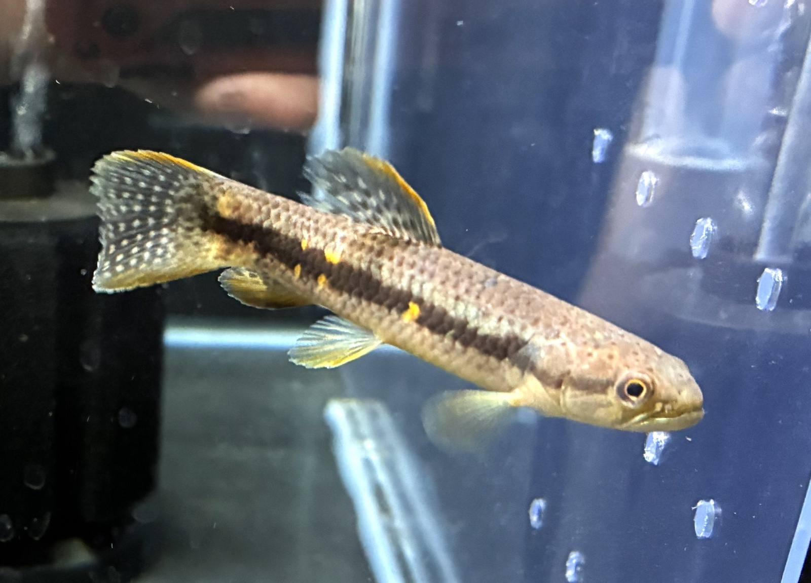 本種は大きな背鰭と体のオレンジ色の模様が目立つ美しい中型種♪