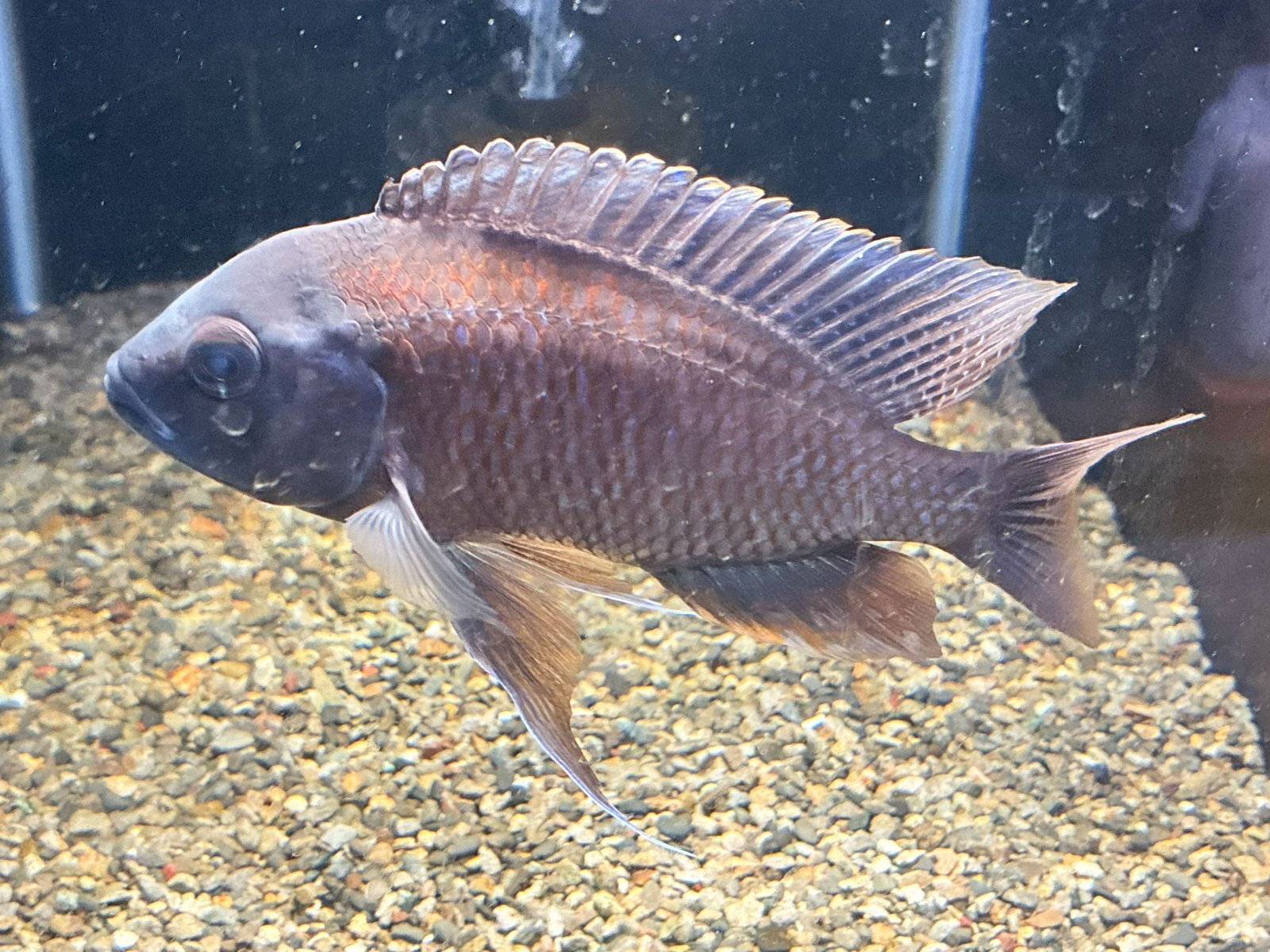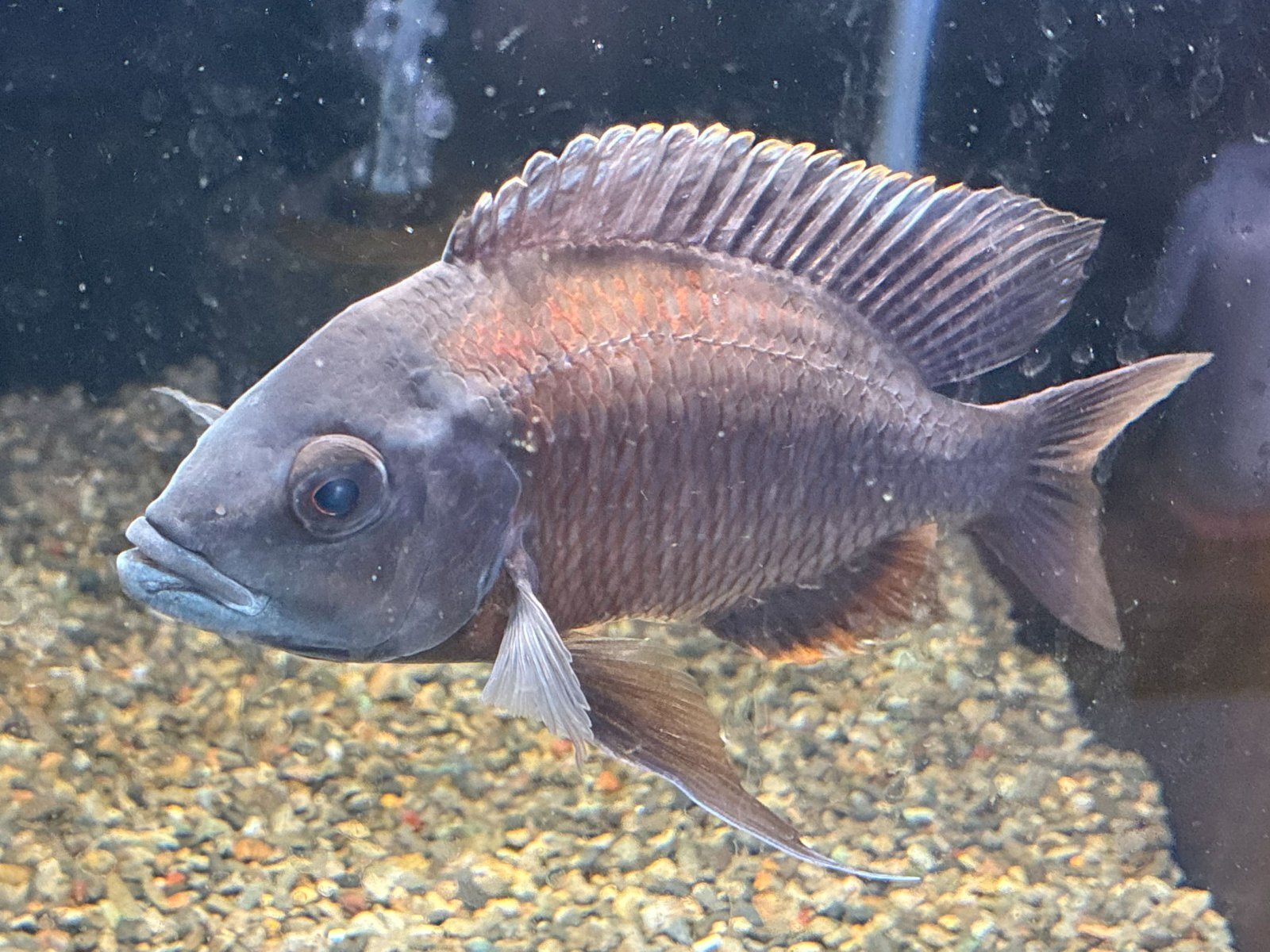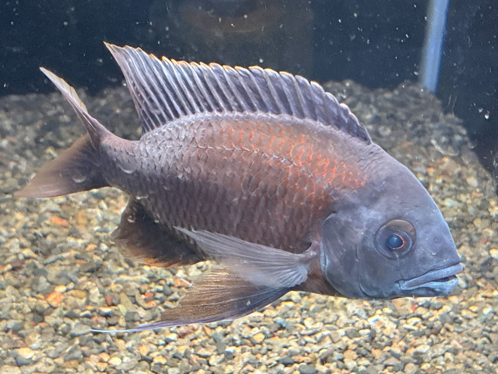 本種はオスは成熟すると顔の部分はメタリックなコバルトブルー、体側は濃いオレンジになる美しいアフリカンシクリッドの仲間♪