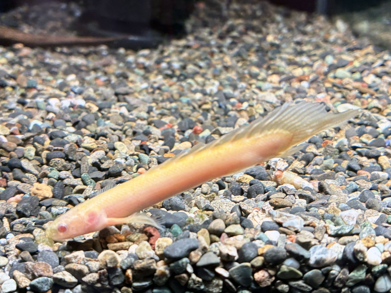 本種はクリーム色の体に赤い目とロングフィン形質が合わさった改良品種♪