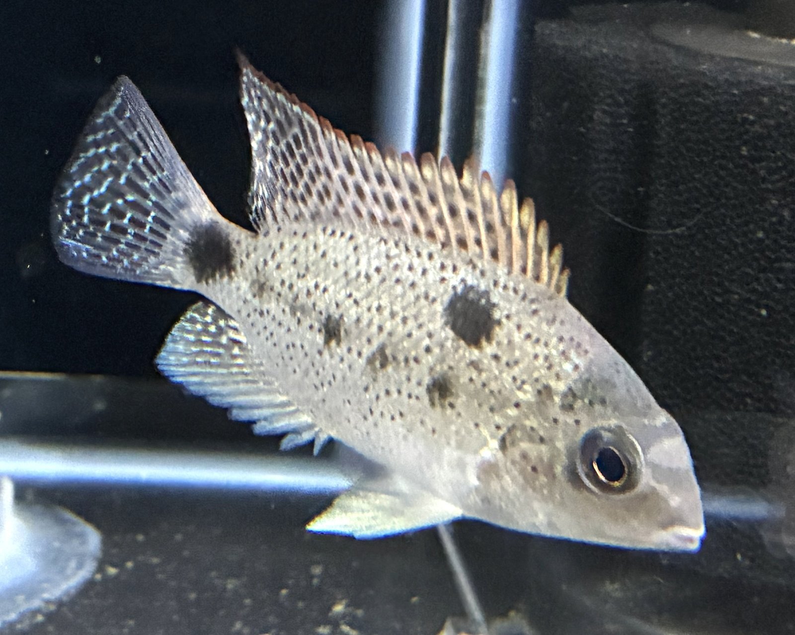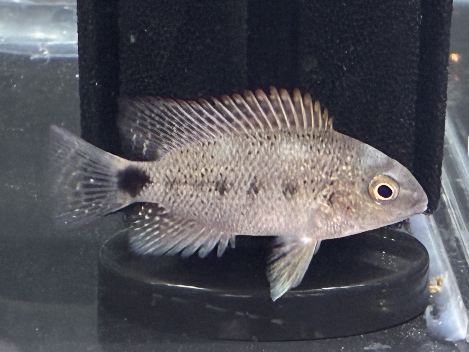 本種は黒いスポットと、白銀の体色が美しい中型シクリッドの仲間♪