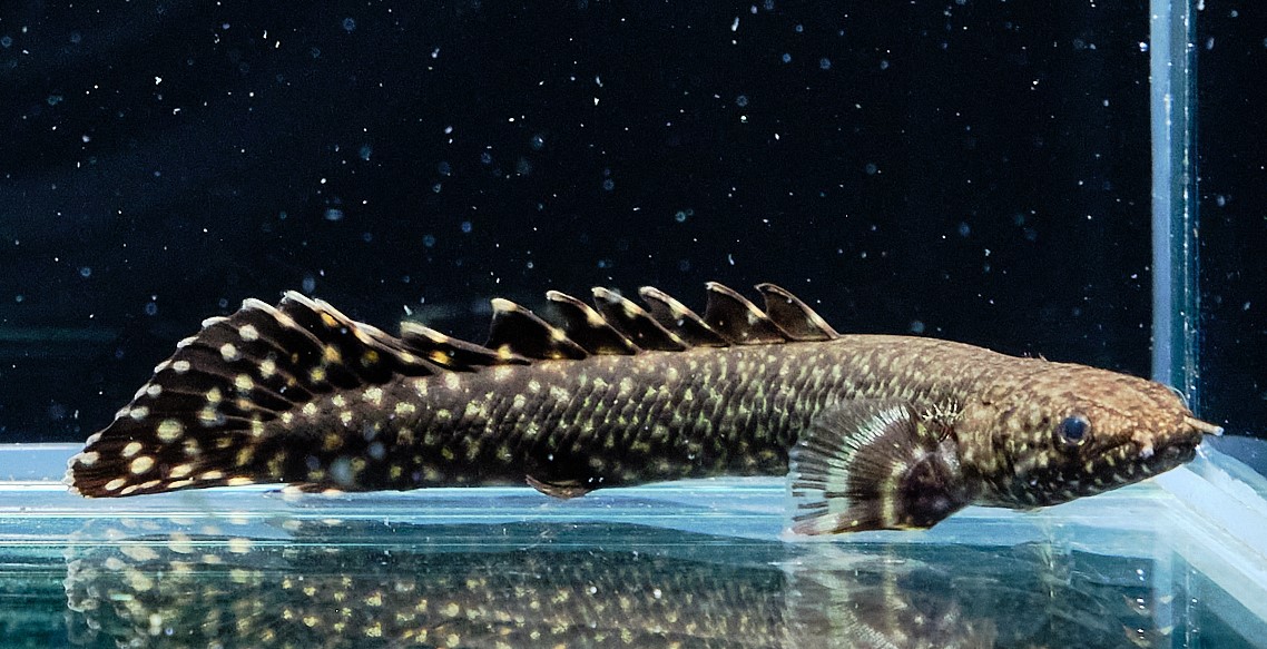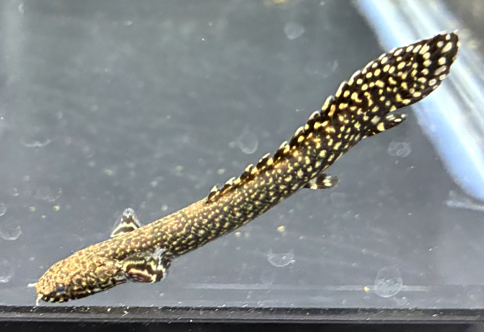 本種は上顎が突出するタイプで、黄色っぽい体に黒い網目模様の派手な見ための大型になるポリプテルス♪