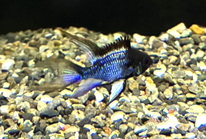 本種は黒体色に青いヒレが非常に美しい改良ラミレジィの仲間♪