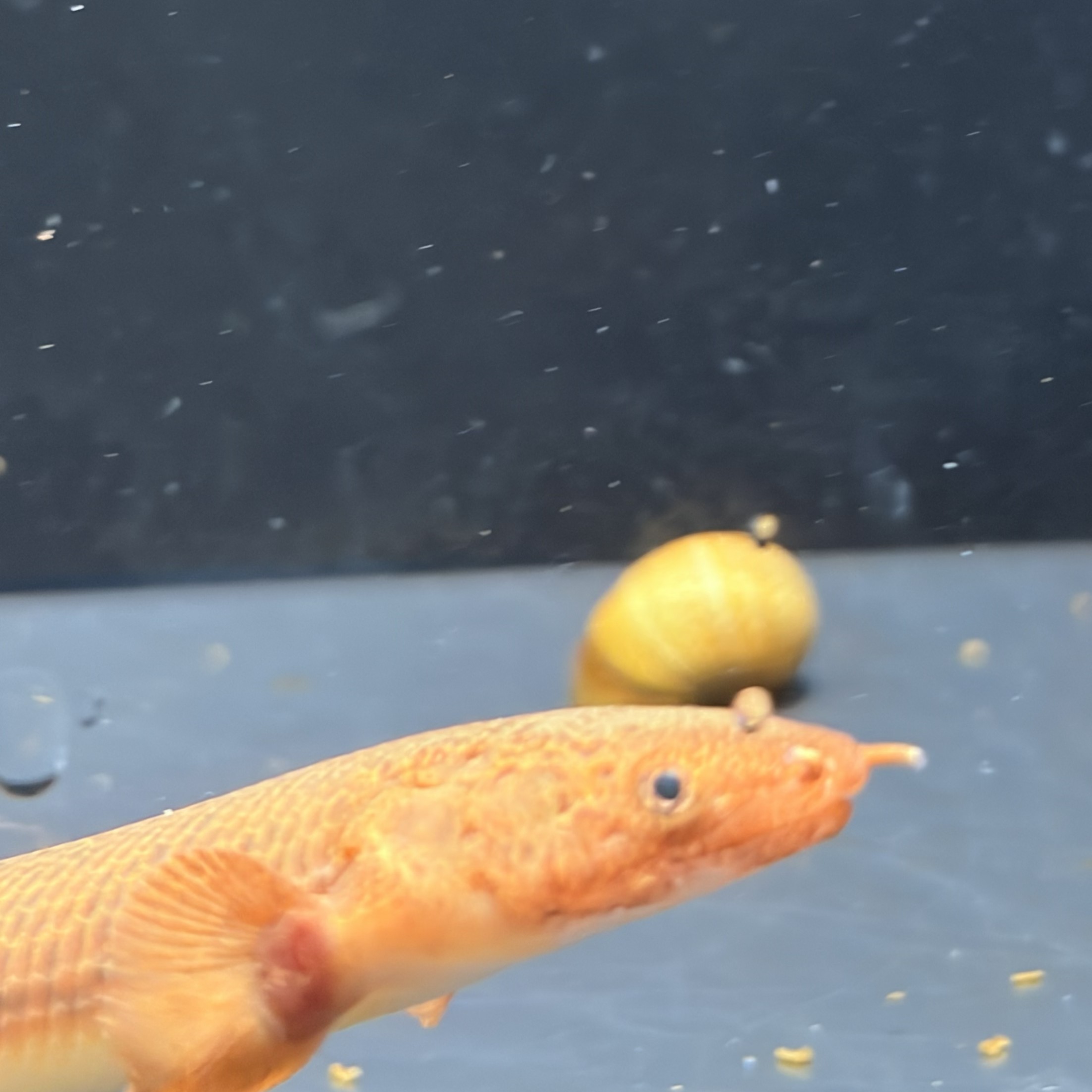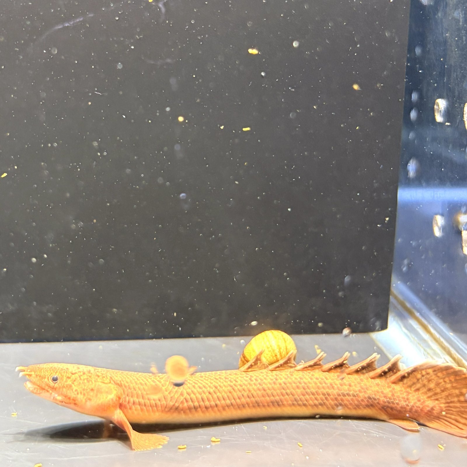 古代魚の生き残りといわれる恐竜時代から姿形を変化させず生きて来た細長い円筒形の体に硬いガノイン鱗を持つ熱帯アフリカの淡水魚♪
