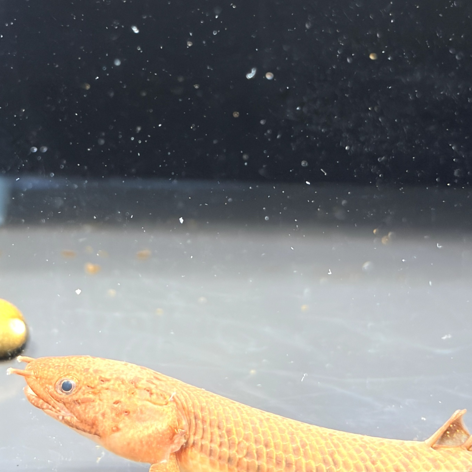 古代魚の生き残りといわれる恐竜時代から姿形を変化させず生きて来た細長い円筒形の体に硬いガノイン鱗を持つ熱帯アフリカの淡水魚♪