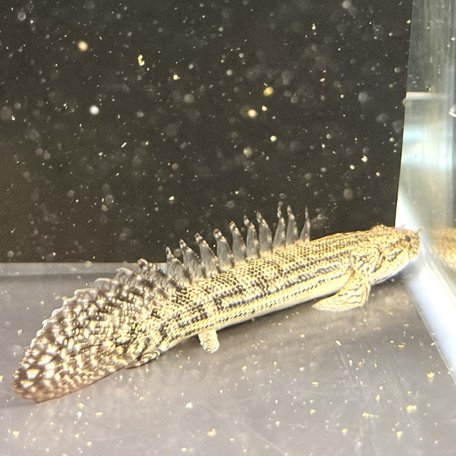 細長い円筒形の体に硬いガノイン鱗を持つ熱帯アフリカの淡水魚♪