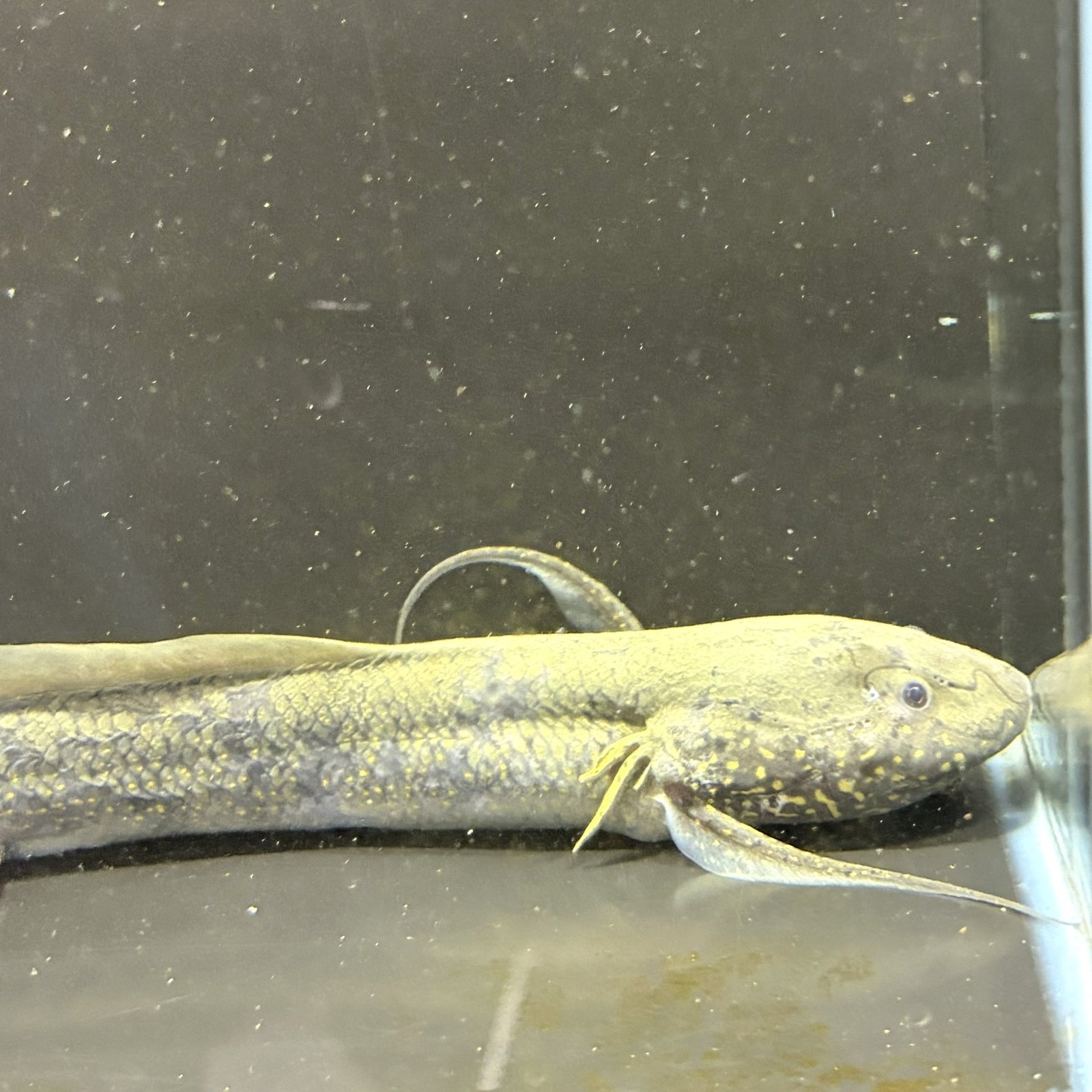 現生肺魚の中で最も小型の種で、Protopterus属4種の中で最も丸みを帯びた頭部・寸詰まりの体型を持つ愛嬌あるフォルムが人気♪