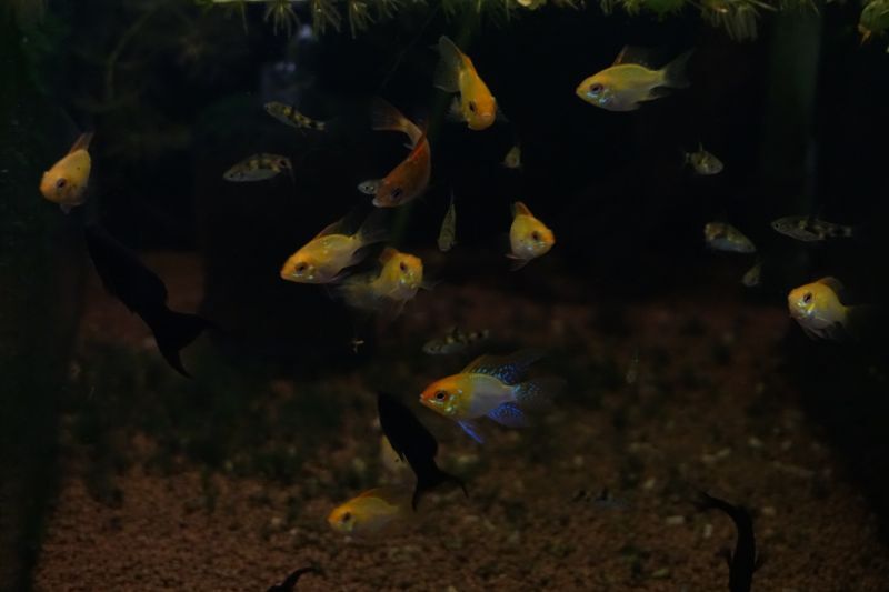 | 飼育 | 水温は25〜28℃で 水質は弱酸性(pH7.0〜6.5)で 他の小型魚との混泳もある程度可能♪ 飼育自体は普通種と同様♪ |