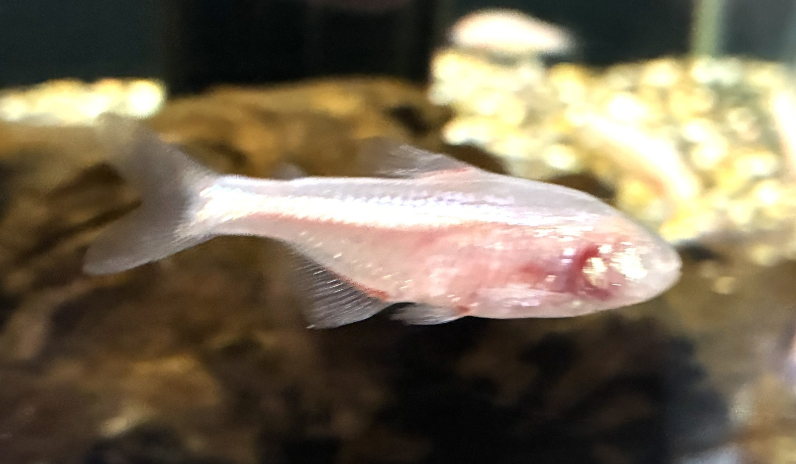 本種は洞窟内に生息しているため目が退化していて目のある部分は鱗で覆われているカラシンの仲間♪