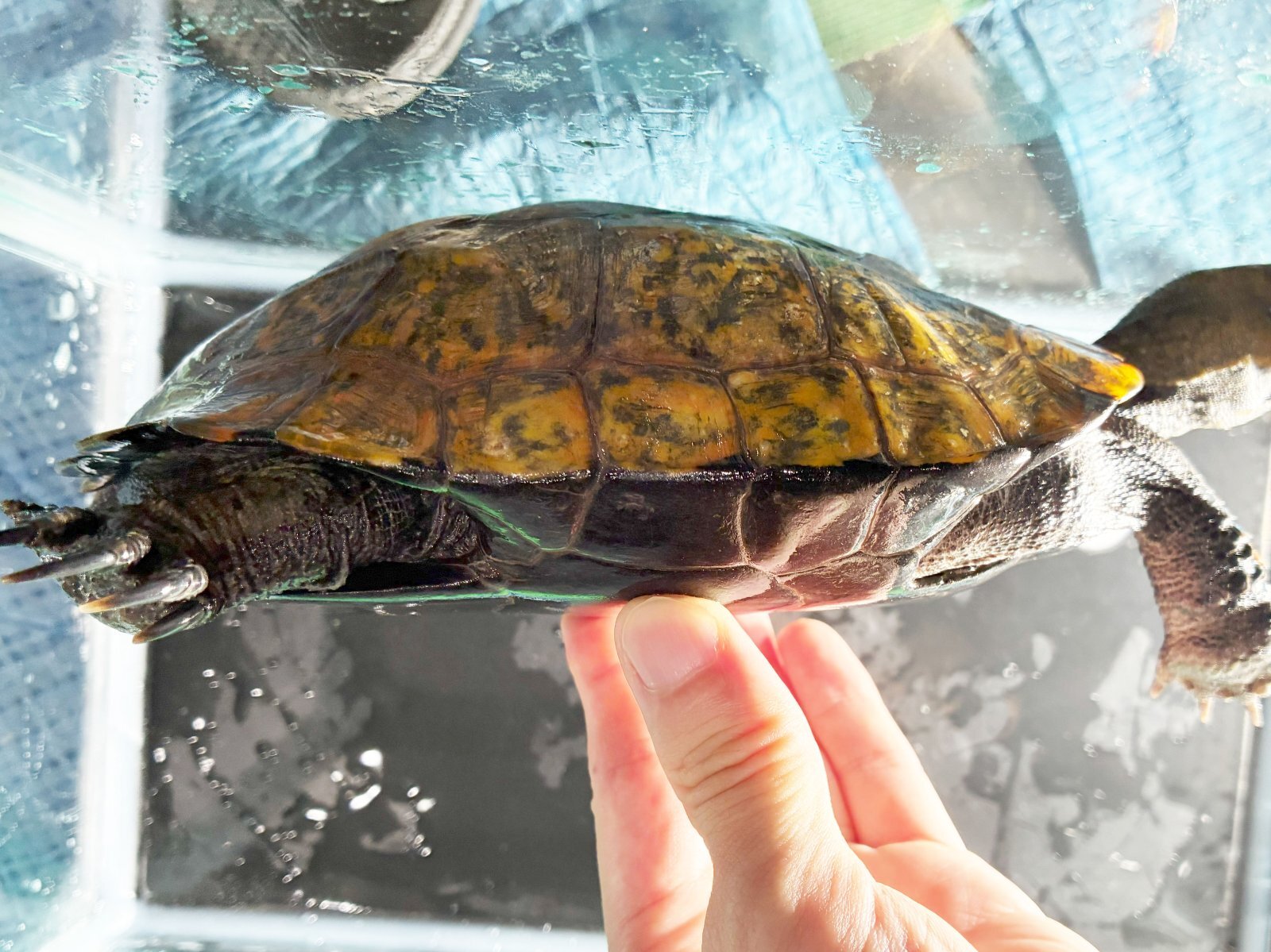 本種は日本の清流に生息している個体差はあるが基本は黄色い甲羅に黒い手足で長めの尾を持つ日本固有の亀♪