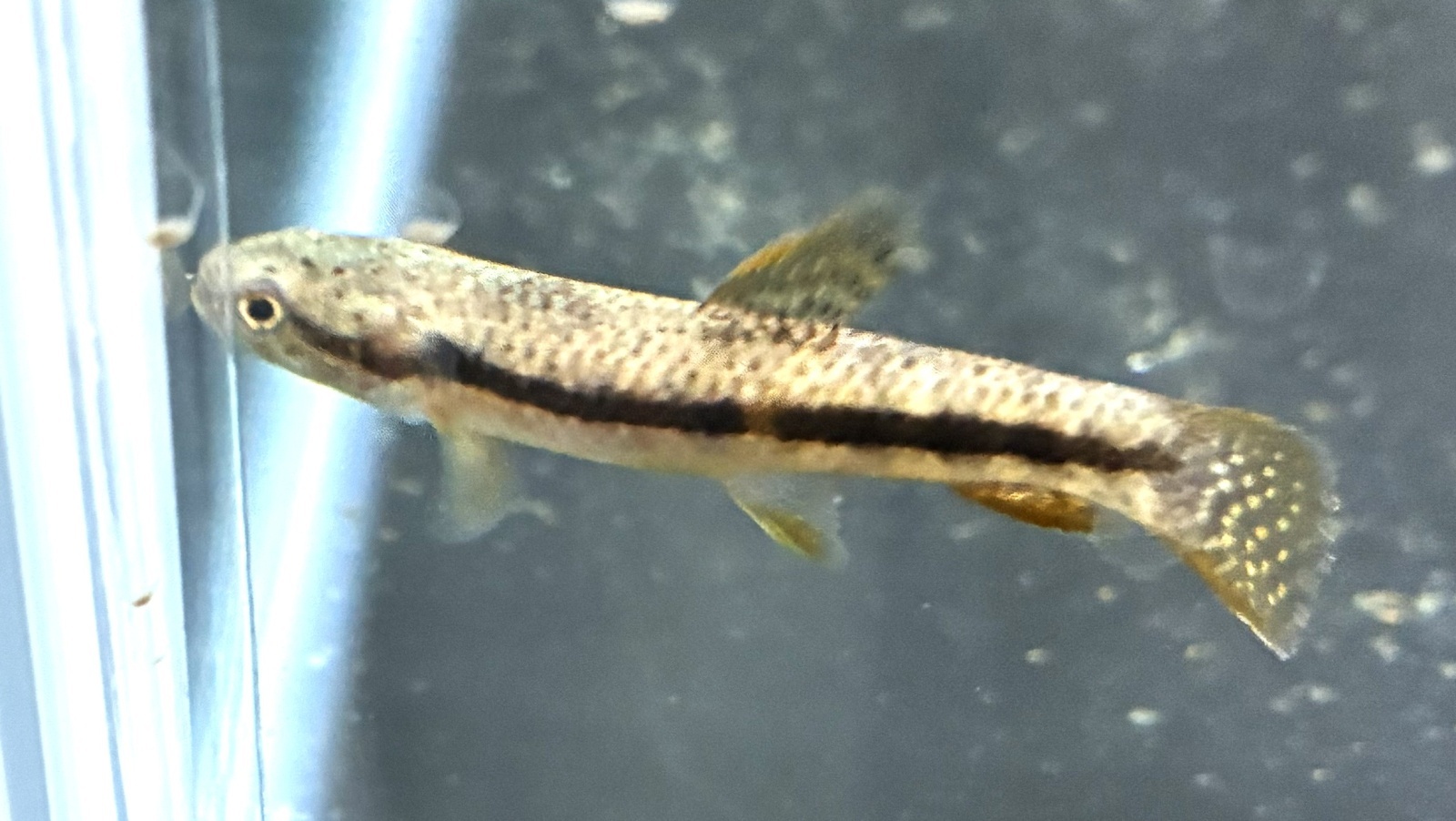 本種は大きな背鰭と体のオレンジ色の模様が目立つ美しい中型種♪