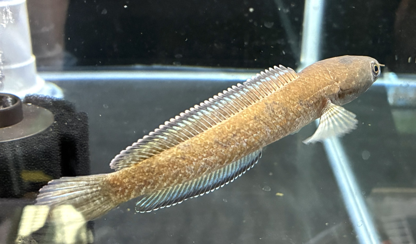 本種は体は青く黒いスポットが入る派手な色彩の小型スネークヘッド♪