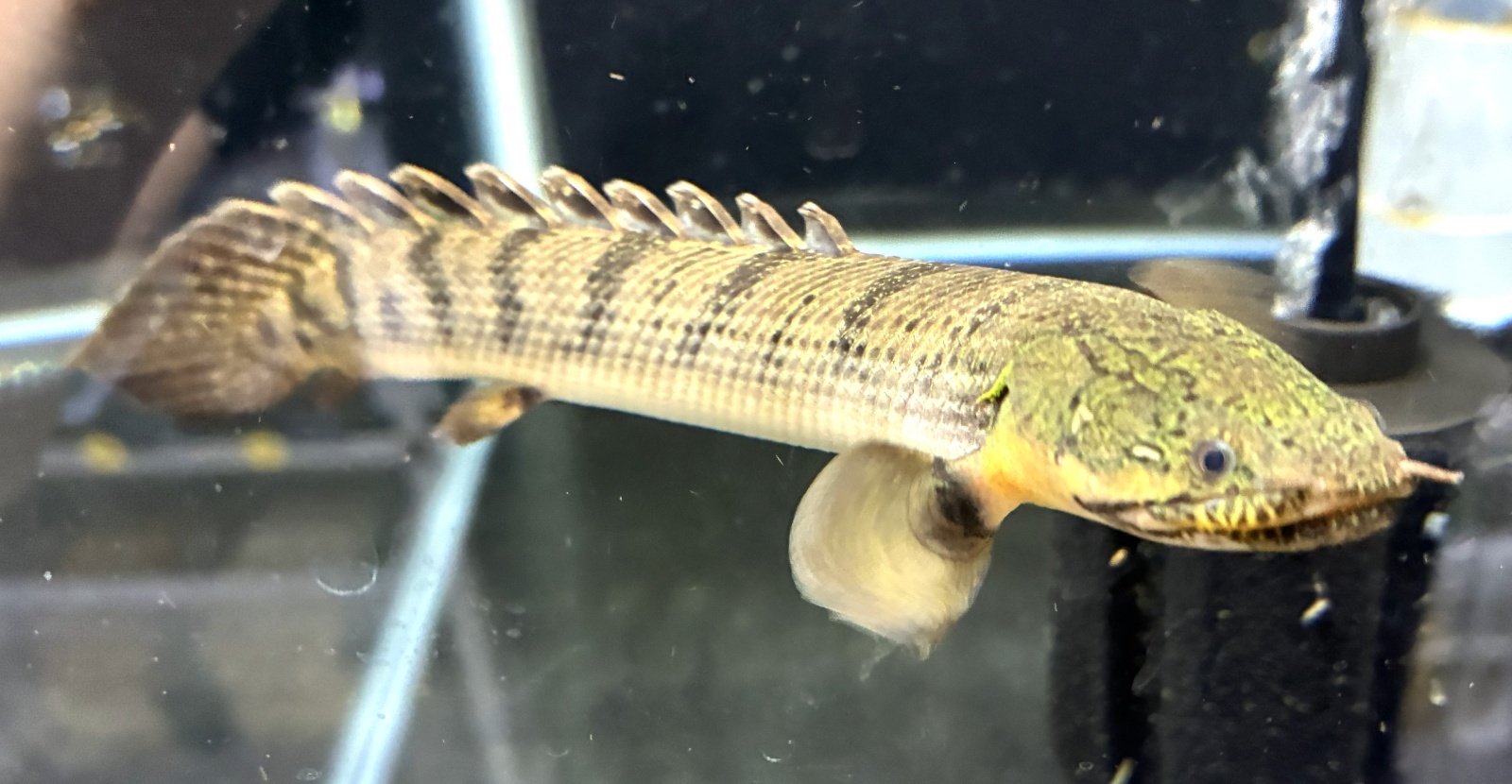 本種は丸味のある頭と体型、縦シマが特徴的なポリプテルスの仲間♪